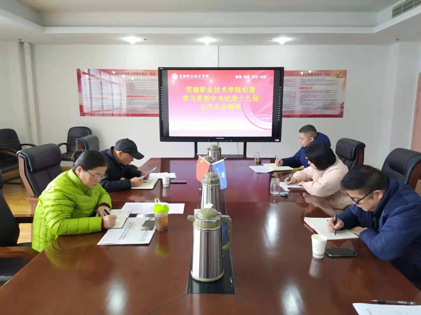 2月8日下午,学校纪委召开会议,学习贯彻十九届中央纪委五次全会、安徽省纪委十届六次全会、芜湖市纪委常委会扩大会议精神。校党委委员、纪委书记罗珊红主持会议并讲话。纪检监察审计处工作人员和机关党总支纪检委员参加会议。